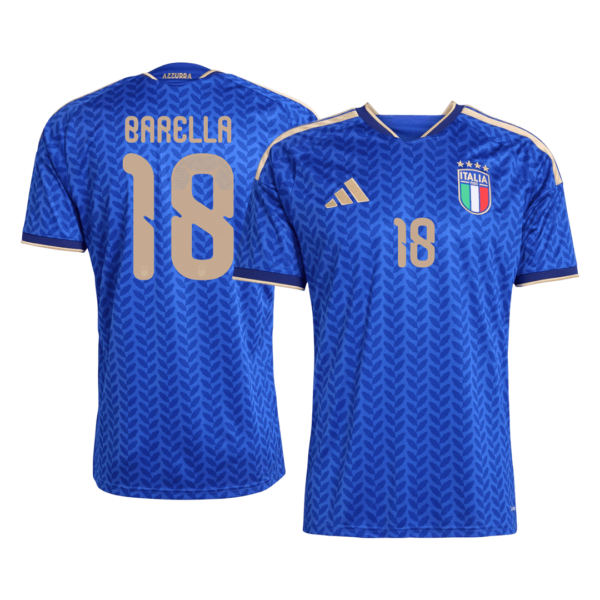Marking the 20th anniversary of the legendary 2006 triumph, this Italy jersey sees the glorious return of metallic gold detailing. The crest and logos shine in gold for the first time in two decades, honoring the champions of Berlin. Whether you're cheering for stars like Donnarumma or Barella, this kit ensures you look the part of a true fan.