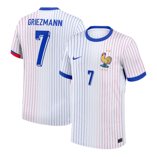The 2024/25 away France jersey perfectly showcases French elegance and style. The new France jersey Euro 2024 adopts the pinstripes that often appear in fashion shows. The fine tricolor stripes change discreetly from blue to red and highlight the oversized badge. This style also appeared on the French jerseys in the 1980s and 2000s. The large team badge with the rooster pattern has always been a feature of the French away soccer kit, so France away soccer jersey Euro 2024 continues the Vintage jerseys. The nation's crest and brand logo added mesh panels help with support on-pitch performance, are created with a light and thin fabric.