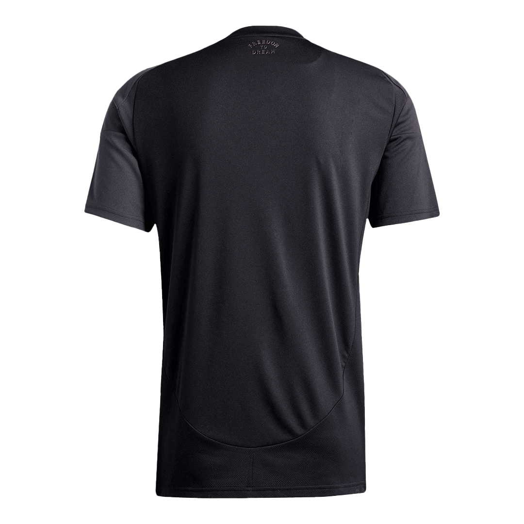 Inter Miami CF Away Soccer Jersey 2025 OUT NOW! Inter Miami CF jersey is designed with black as main color like the 2024 season, then complementing with gray and pink accents. The 2025 Inter Miami CF jersey celebrates the vibrant South Florida culture and is an Inter Miami CF jersey that reflects the club’s ambitions. What’s more, the Inter Miami CF camiseta futbol is designed into half gray and half black, and the iconic three-stripes on the shoulder are also switched along with the half-and half color scheme. We can see the motto ‘FREE TO DREAM’ is embroidered on the back of Inter Miami CF camiseta futbol. It’s time to show your support for the iconic football club with this stylish and high-quality Inter Miami CF jersey. The whole Inter Miami CF kit is completed with matching white shorts and socks.