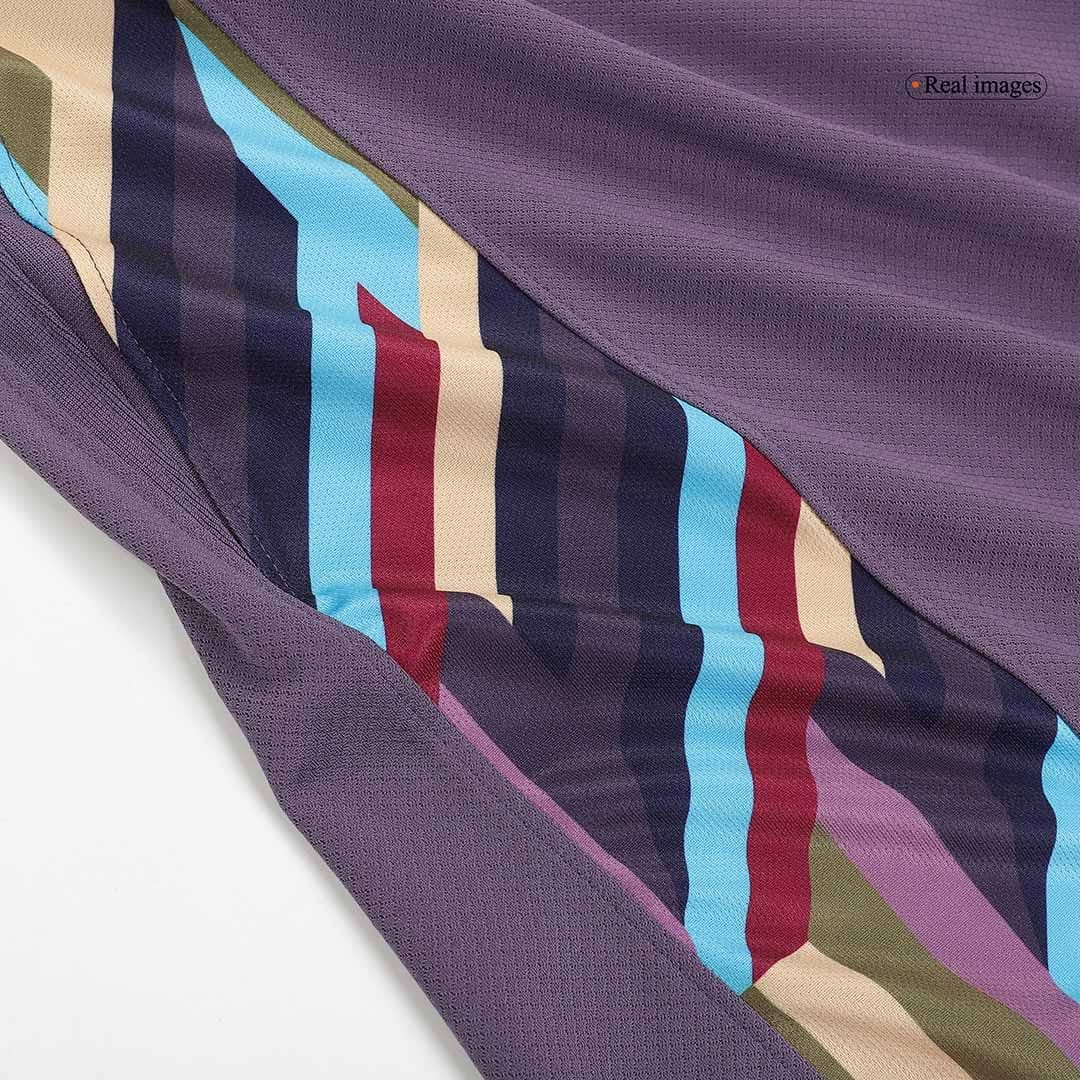 The new England away soccer kit Euro 2024 features a dark pale maroon with colorful side panels. There are seven different colours in the playful graphic side panels, with gold detailing on the brand and three Lions badge. The highlight of cheap England jersey EURO 2024 away is the multi-color design on both sides. There is a St. George’s Cross on the inside of the collar of England jersey in the same color as the side stripes. Although England jerseys, England authentic jerseys, and England long sleeve jerseys are replica jerseys, these jerseys are almost exactly the same as those on the official website. The fabric of England jerseys, England authentic jerseys, and England long sleeve jerseys are skin-friendly, smooth, breathable and light.