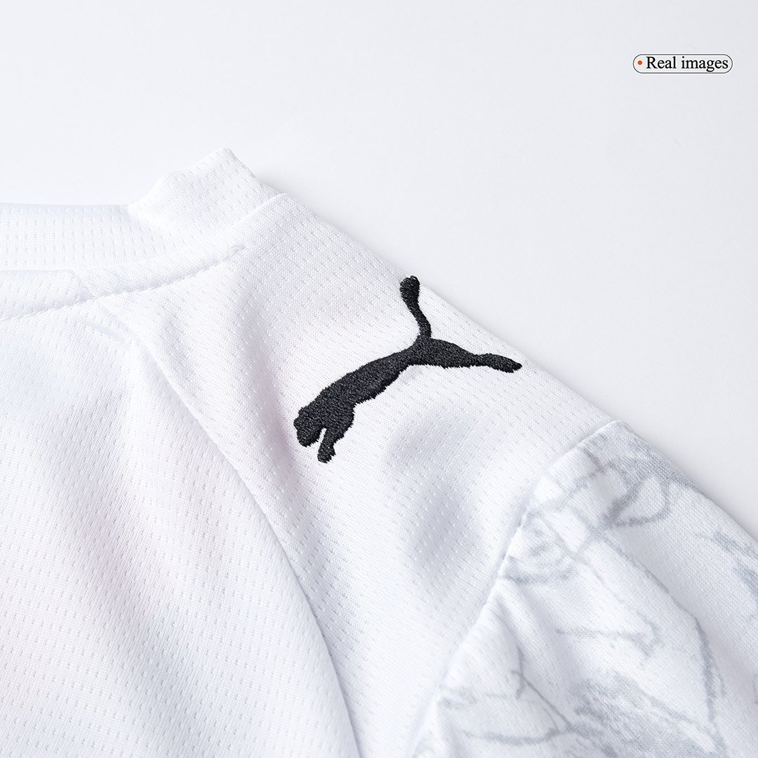 Crafted with lightweight, breathable fabric, this slim-fit shirt ensures comfort and ventilation while showing off the Manchester City crest and unique KidSuper detailing. Available in crisp white and neon sun variations, it's ideal for players or collectors.