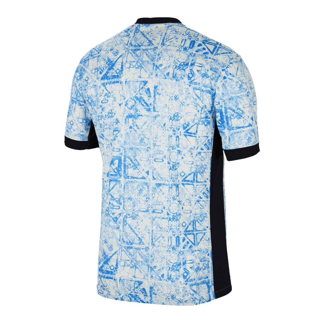 This new Portugal away jersey soccer EURO 2024 is inspired by the country’s traditional architectural art with embroidered black brand logo and red brick team logo, giving players and fans more pride and desire to win when playing away games. 2024 2025 EURO Portugal jersey away features the typical design of traditional blue tiles, adding a subtle hue to the usual white of Portugal jersey.