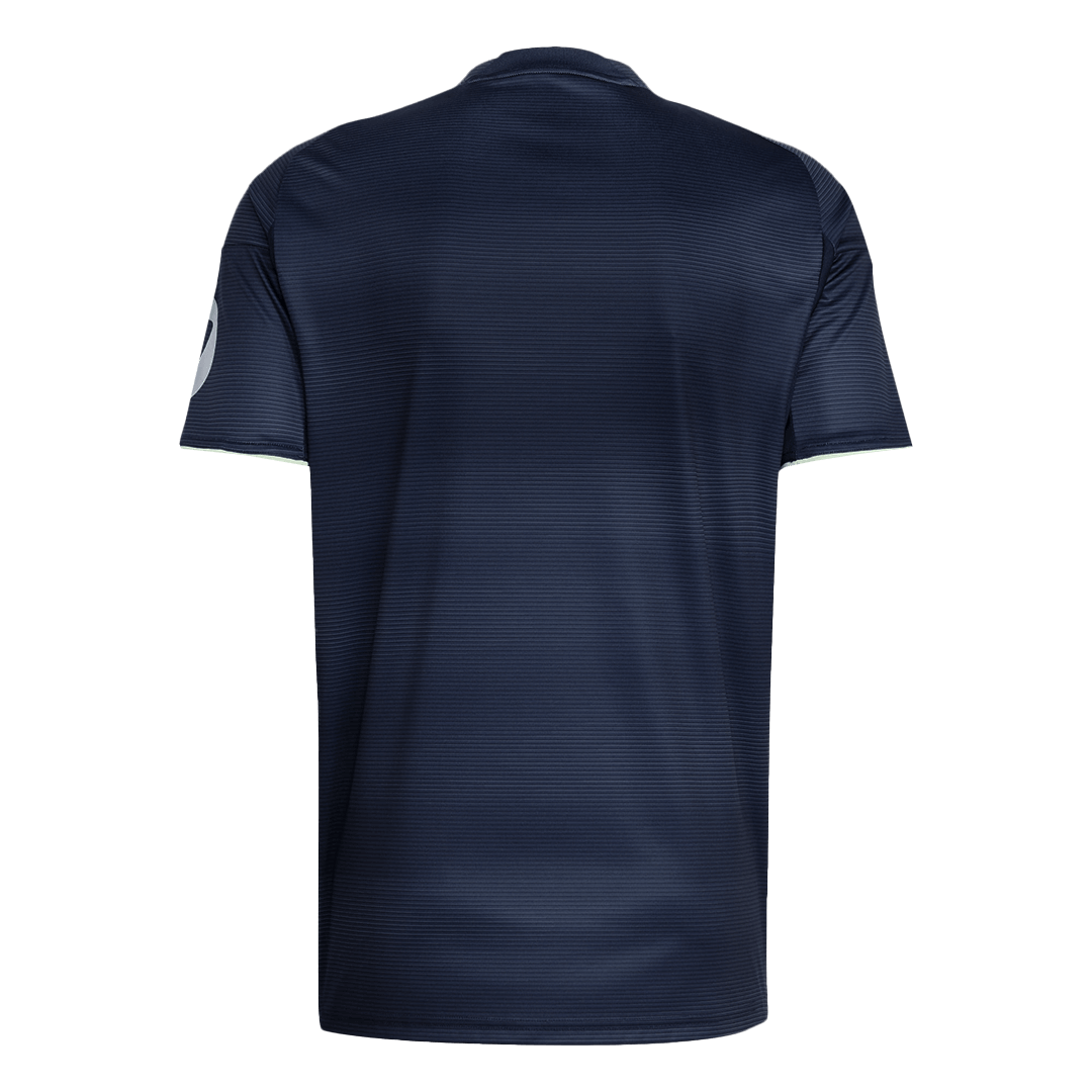 Introducing the Real Madrid Away Soccer Jersey 2025/26, now available at Gogoalshop! This latest Real Madrid jersey is more than just a uniform—it's a symbol of innovation, heritage, and the magic of football under the lights of the Santiago Bernabéu. Inspired by the stadium's stunning nighttime façade, this Real Madrid football jersey brings architectural elegance directly to the pitch.