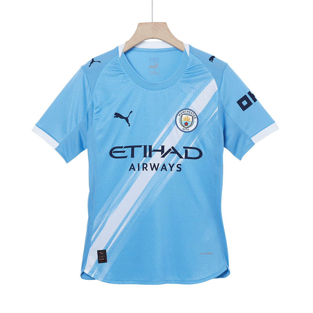 Crafted with lightweight, breathable fabric, this Manchester City home kit 25/26 delivers comfort for match days, training, or everyday wear. Available in authentic jersey, replica jersey, kids jersey, and long sleeve versions. Personalize your Manchester City soccer jersey with official-style name and number printing for stars like Haaland, Foden, De Bruyne, and Rodri.