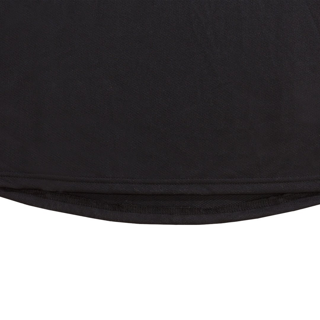100% polyester and keeps you feeling dry.